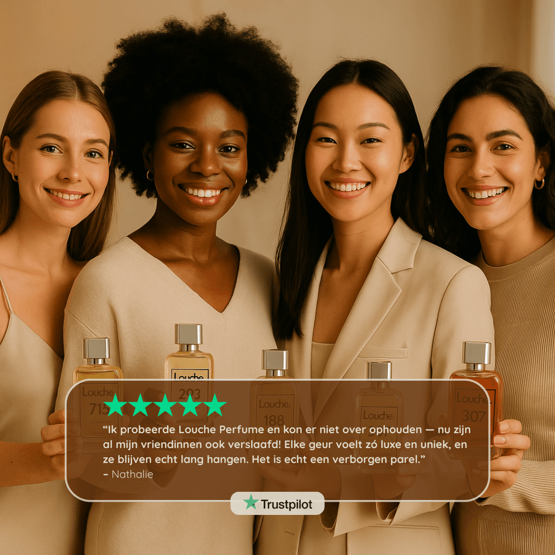 Let op: Onze parfums zijn geïnspireerd op de geurnoten van bekende geuren, maar zijn geen exacte kopieën, replica’s of vervangingen voor de originele designerparfums. Louche Perfume staat volledig los van deze merken en heeft geen enkele samenwerking of goedkeuring van hun fabrikanten. Merknamen, auteursrechten en handelsmerken zijn eigendom van hun respectieve eigenaren en behoren niet aan ons toe. Vermelde productnamen dienen uitsluitend ter referentie en impliceren geen enkele verbondenheid met de merkeigenaren.